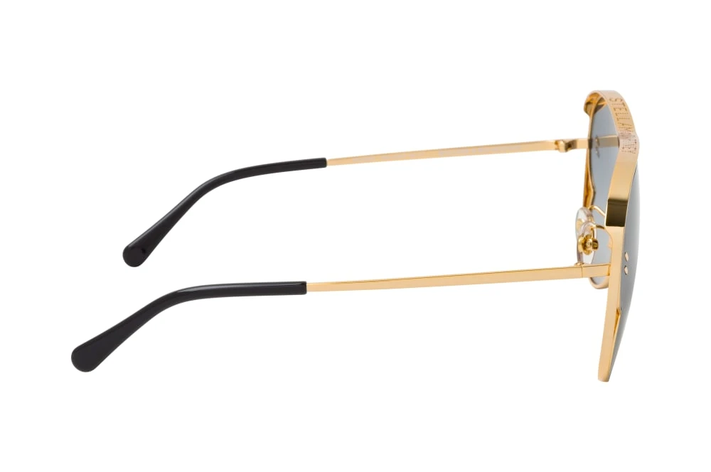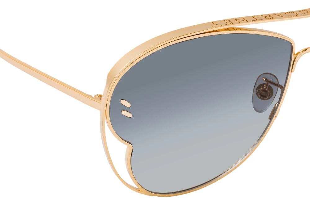 - Monture de coloris doré brillant avec signature de la marque et accents métalliques